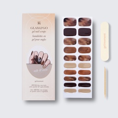 Our GLAM & GO gel nail wraps ensure that no matter how complex your chosen nail design, the application process remains incredibly simple. Our GLAM & GO gel nail wraps require no glue, base coat, or top coat—just peel them off the packaging, apply them to your nail, trim to size, cure twice, and voilà!