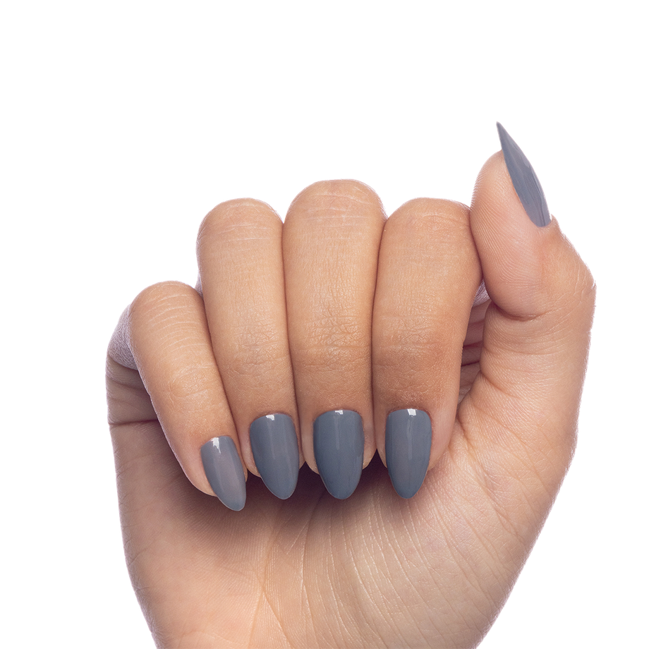 Steel grey. Medium. Opaque. Cool undertone.